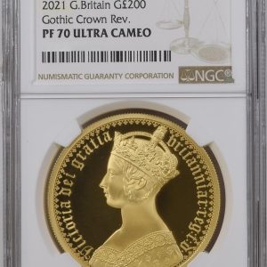 Great Engravers – 2021 Gothic Crown Portrait 2oz Gold Proof NGC PF69 Ultra Cameo – Comes with Box & Coa, The Royal Mint, Great Britain