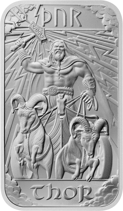 Each silver bar from the Norse Gods series is securely packed in the distinctive Cardbar designed & produced by Germania Mint, not only for protection but also to enhance its collectible value. The packaging features intricate designs inspired by Norse mythology, including runes and symbols closely tied to norse gods.