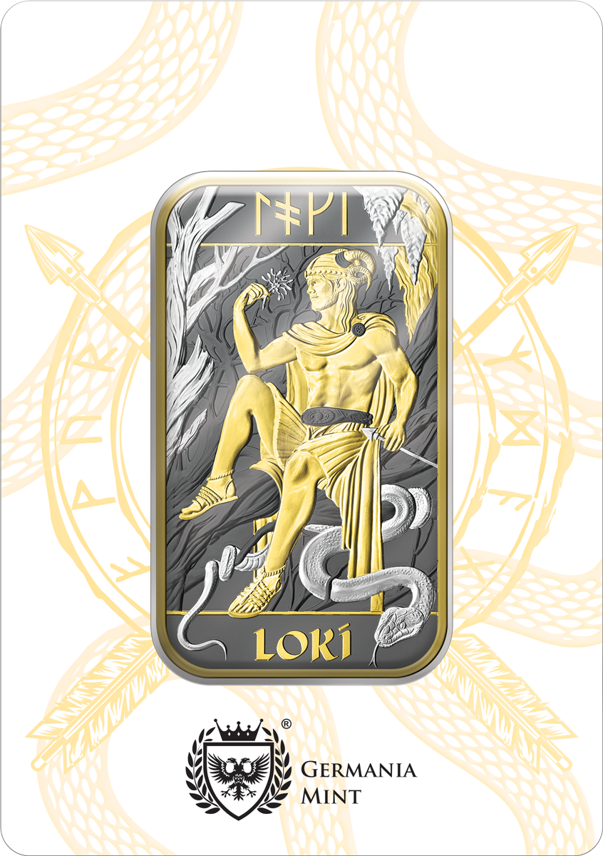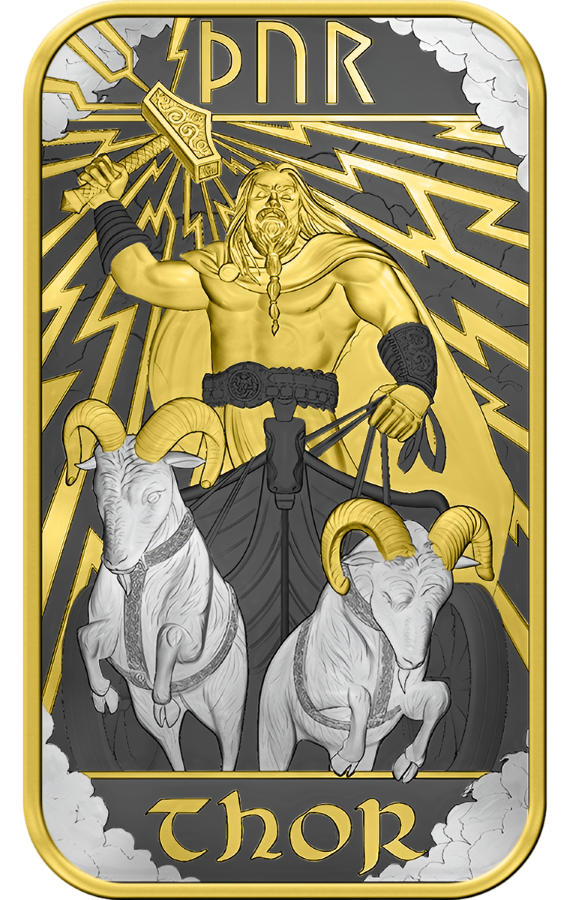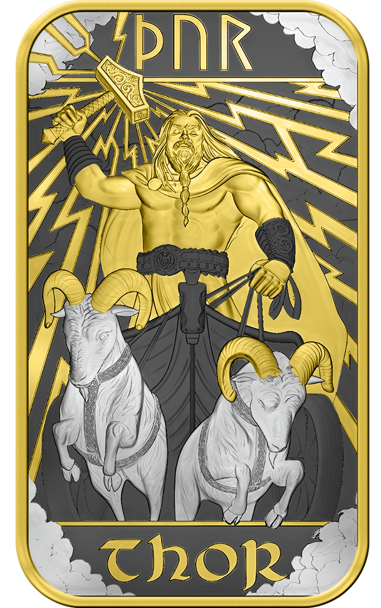 We present an ennobled special edition of the Norse Gods silver bars. Originally struck by The Royal Mint, each bar has been enhanced by Germania Mint with gold and ruthenium plating, giving the highest-quality silver an entirely new, distinctive character. The bars are housed in new, convenient Cardbar packaging, combining elegant presentation with secure protection.